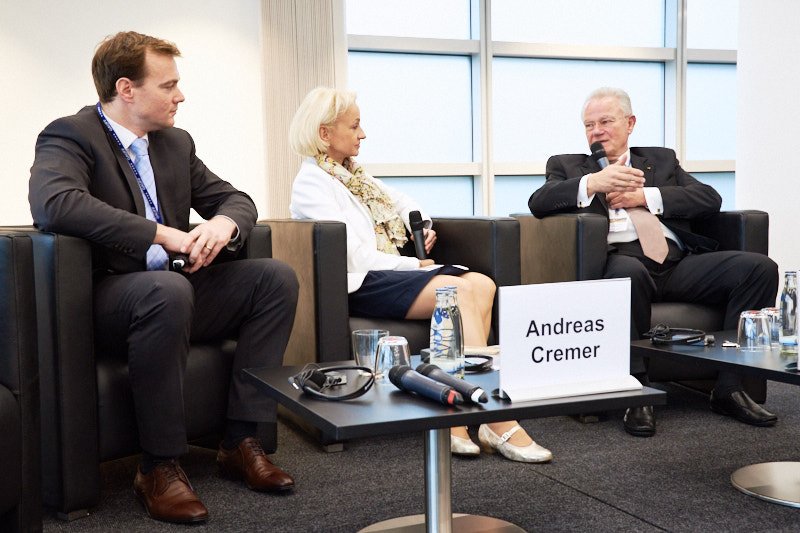 v.l.n.r.: Andreas Cremer (DEG - Deutsche Investitions- und Entwicklungsgesellschaft mbH), Judith Helfmann-Hundack (Afrika-Verein der deutschen Wirtschaft e.V.), Prof. Dr. Hans-Jörg Bullinger (Wilo-Foundation)