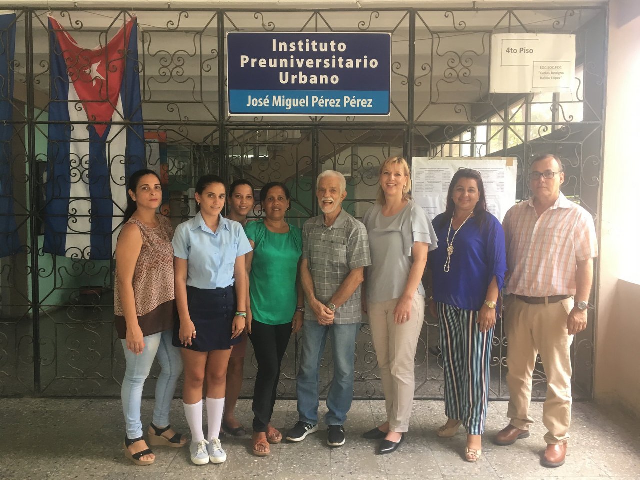 Stiftungsvorstand Evi Hoch (3. v.r.) und Raul Rodriguez (1. v.r.) besuchten die Schule in Havanna im Mai 2019. Foto: Wilo-Foundation