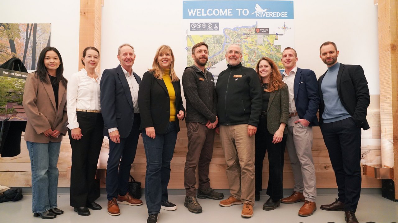 Gruppenbild im Rahmen des Re-Openings am 5. November: (v.l.n.r.): Aji Noor, Jenny Terrill, Laurent Davis (alle Wilo USA), Evi Hoch (Wilo-Foundation), John Rakowski , Thomas Jansen, Sharon Cross (alle Riveredge Nature Center), Luke Copp (Wilo USA) und David Höltgen (Wilo-Foundation). Foto: Wilo-Foundation