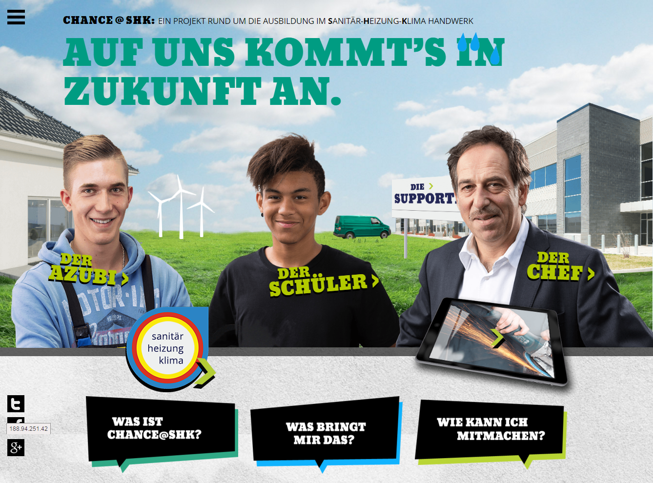 Bei dem Projekt „Chance@SHK-Handwerk“, das vom Verein Chancenwerk, mit Unterstützung der Wilo-Foundation (hier: als Treuhänderin der WILO-Stiftung) und in Kooperation mit dem Zentralverband Sanitär, Heizung, Klima (ZVSHK) auf die Beine gestellt wurde, sollten die Berufschancen junger Menschen erhöht und den Nachwuchssorgen des SHK-Handwerks begegnet werden.